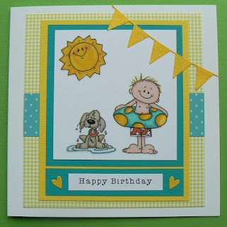 The theme over at Daring Cardmakers this week is Summer Party....and the theme at Allsorts is One for the Boys. I've been wanting to play with these Penny Black Stickeroos again so this was the perfect chance to get cracking. A fairly plain and simple design but I think it works.... Just wish the sun would make an appearance in real life now!